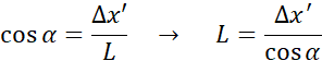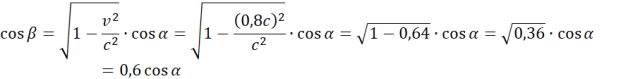 Pręt porusza się poziomo, więc skraca się jedynie na tym kierunku. Korzystając z funkcji trygonometrycznych zapisz zależność między długościami a kątami nachylenia pręta. Zapisz wzór na skrócenie wynikający z transformacji Lorentza i przekształć go do zależności