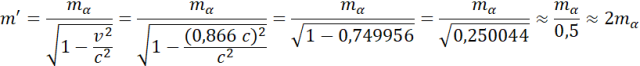 Określ masę relatywistyczną, którą ma cząstka alfa poruszająca się z prędkością , wiedząc, że jej masa spoczynkowa wynosi .