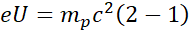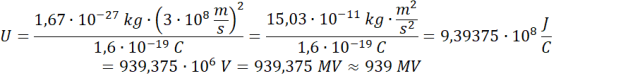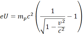 Zapisz zależność przedstawioną w treści zadania i wyznacz wartość nieznanych parametrów. Następnie, korzystając z zasady zachowania energii, zapisz równość pracy wykonanej przez akcelerator cząstek i energii kinetycznej protonu. Przekształć wzór, wstaw odpowiednie dane liczbowe i wykonaj obliczenia.