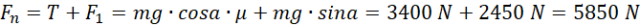 Naprężenie liny równoważy siłę tarcia skrzyni o równię i składową siły grawitacji równoległą do równi, zatem jest równe sumie tych sił.