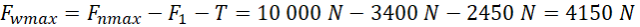 Maksymalna wartość siły wypadkowej jest równa różnicy maksymalnej wartości naprężenia liny i oporów działających podczas ciągnięcia skrzyni pod górę.