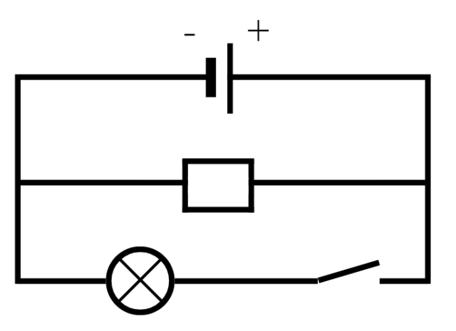 Narysuj schematy trzech różnych obwodów zbudowanych z ogniwa, opornika, żarówki i włącznika.
