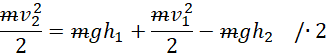 Na początku wypisujemy dane z treści zadania. Następnie zapisujemy zasadę zachowania energii, biorąc pod uwagę sytuację na wysokości 20 m i 10 m. Przekształcając wzór otrzymujemy zależność pozwalającą wyliczyć energię kinetyczną na wysokości 10 m. Rozpisując odpowiednie energie, skracając przez m oraz mnożąc razy 2 otrzymujemy wzór na kwadrat prędkości. Ostatnimi krokami są podstawienie wartości liczbowych i wyliczenie prędkości poprzez zastosowanie pierwiastkowania.