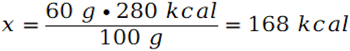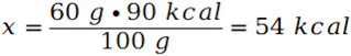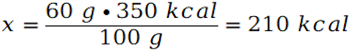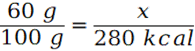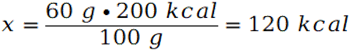 By obliczyć wartość energetyczną skonstruuj stosunek. Jest to poprawne, gdyż wartość energetyczna jest wprost proporcjonalna do masy.