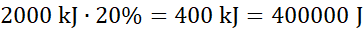 Wartość energetyczna czekolady to 2000 kJ, mięśnie Kasi mogą wykorzystać maksymalnie 20%, czyli około 400 kJ.