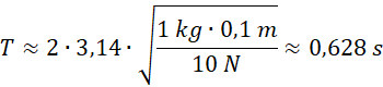 Oblicz okres drgań klocka o masie m = 1 kg poruszającego się ruchem harmonicznym po wychyleniu go o amplitudę A = 10 cm pod wpływem siły o wartości 10 N.