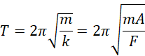 Wykorzystujemy wzór na okres drgań ciała na sprężynie. Współczynnik sprężystości obliczamy, korzystając ze stosunku przyłożonej siły do amplitudy.