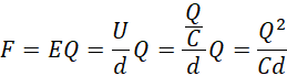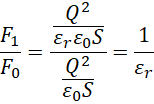 W przypadku gdy przed zanurzeniem kondensator zostaje odłączony od źródła napięcia ładunek zgromadzony na nim się nie zmienia. Wykorzystujemy wzór na siłę przyciągania, a następnie zestawiamy siły przed i po zanurzeniu kondensatora i wykonujemy odpowiednie obliczenia.