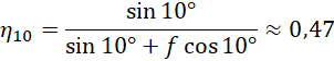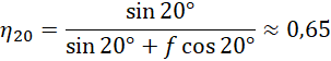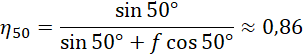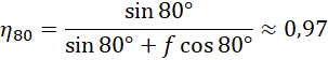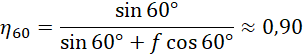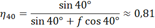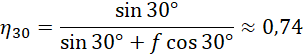 Oblicz sprawność równi, jeśli kąt jej nachylenia wynosi kolejno: , a współczynnik tarcia kinetycznego ciała o powierzchnię wynosi 0,2.