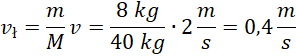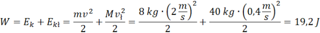 Praca, jaką wykonał łyżwiarz, jest równa sumie energii kinetycznej sanek i łyżwiarza. Prędkość łyżwiarza oblicz za pomocą zasady zachowania pędu.