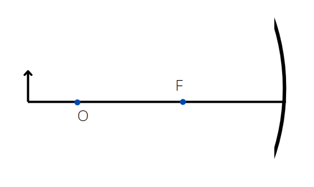Odległość ogniska od zwierciadła będzie 2 razy mniejsza od odległości od punktu O (środek krzywizny) do zwierciadła.
