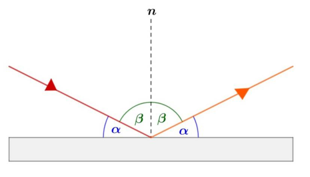 Zgodnie z prawem odbicie, promienie padający oraz odbity tworzą z normalną do powierzchni (