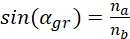 Zatem wzór na kąt graniczny będzie wyglądał następująco: