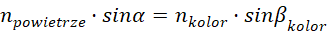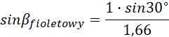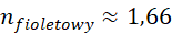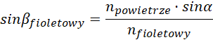 Oblicz różnicę pomiędzy kątami załamania dla czerwonego i fioletowego światła.