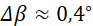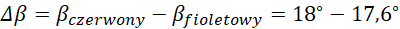 W związku z tym kąt pomiędzy promieniem czerwonym a fioletowym po pierwszym załamaniu po wejściu do pryzmatu wynosi około