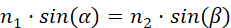 W pierwszym kroku musisz użyć równania Snelliusa (prawo załamania) do obliczenia kąta załamania dla obu długości fal - czerwonego i fioletowego światła: