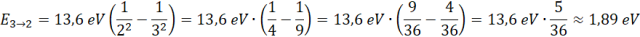 Energię występującą przy przeskoku elektronu w atomie wodoru wyrażamy wzorem: