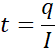Natężenie prądu jest równe ładunkowi przepływającemu w czasie. Przekształć wzór i otrzymujemy zależność na czas potrzebny do rozładowania akumulatora.