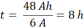 W tym zadaniu oblicz czas, po którym rozładuje się akumulator o pojemności 48 Ah, przez który płynie prąd o natężeniu 6 A.