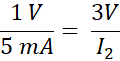 Zapisz stosunek napięcia do natężenia prądu w dwóch przypadkach: jednym znanym, drugim szukanym. Przyrównujemy je do siebie i przekształcając wzór, otrzymujemy wartość natężenia prądu.