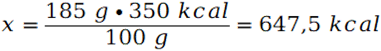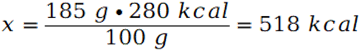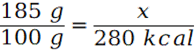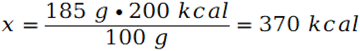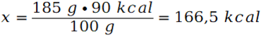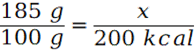 By obliczyć wartość energetyczną skonstruuj stosunek. Jest to poprawne, gdyż wartość energetyczna jest wprost proporcjonalna do masy.
