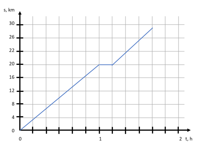 Oblicz drogę przebytą przez rowerzystę po przerwie: