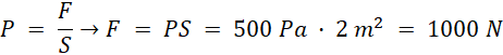 Oblicz siłę działającą na powierzchnię 2 m2, wywołującą ciśnienie 500 Pa.