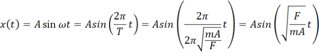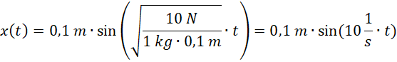 Napisz równanie wychylenia klocka o masie m = 1 kg poruszającego się ruchem harmonicznym po wychyleniu go o amplitudę A = 10 cm pod wpływem siły o wartości 10 N.