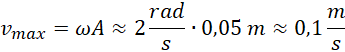 Okres drgań odczytujemy z wykresu określając czas potrzebny na wykonanie jednego pełnego drgania. Częstość kołową i prędkość maksymalną obliczamy na podstawie odpowiednich wzorów.