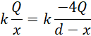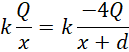 1. Na zewnątrz układu, naliczamy odległość od Q: