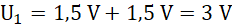 Napięcia przy połączeniu szeregowym sumują się. Jednakże w punktach B i D przewody łączą te same bieguny baterii.
