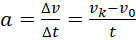 Oblicz wartości przyspieszenia korzystając ze wzoru