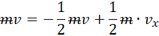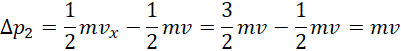 Oblicz wartość prędkości drugiej części pocisku i jej zmianę pędu, a także zmianę pędu pierwszej części, jeśli wiadomo, że pocisk rozerwał się na dwie równe części, a pierwsza część uzyskała prędkość .