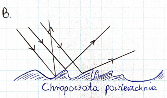 Gdy promień świetlny pada na płaską powierzchnię – odbija się, natomiast gdy pada na nieregularną, chropowatą powierzchnię – rozprasza się.