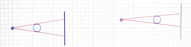 Wniosek: Gdy oddalamy źródło światła, cień zmniejsza się.