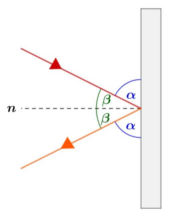 Zgodnie z prawem odbicie, promienie padający oraz odbity tworzą z normalną do powierzchni (