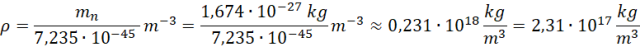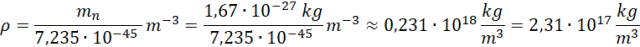 Oblicz za pomocą wyznaczonego wcześniej wzoru gęstość materii jądrowej. Podaj wynik w .