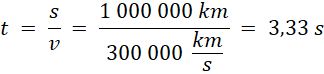 Światło pokona 1 000 000 km w czasie 3,33 s.