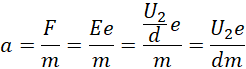 Wykorzystujemy wzór na przyspieszenie wynikający z drugiej zasady dynamiki. Następnie zapisujemy wzorem siłę działającą na cząstkę w polu elektrostatycznym i wyrażamy wartość natężenia tego pola za pomocą znanych nam wielkości.