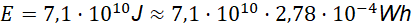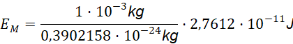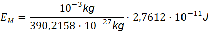 Stąd, energię, która zostanie uwolniona w reakcji, można wyznaczyć jako produkt liczby atomów i energii uwolnionej podczas rozszczepienia jednego atomu uranu: