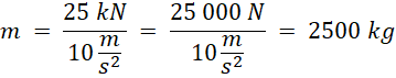 Ciało ma masę 2500 kg.