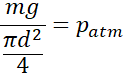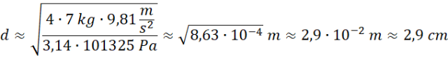 Aby podnieść krzesło za pomocą przyssawki, należy pokonać ciśnienie atmosferyczne. Dla minimalnej średnicy przyssawki przyrównujemy wytworzone przez nie ciśnienie do ciśnienia atmosferycznego. Przekształcamy wzór podstawiając zależność literową na pole powierzchni przyssawki.