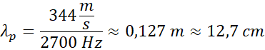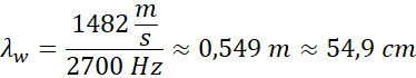 Oblicz długość fali dźwiękowej w powietrzu i w wodzie wiedząc, że ma ona częstotliwość 2700 Hz.