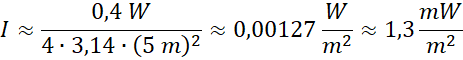 Korzystamy ze wzoru na natężenie dla fali kulistej.