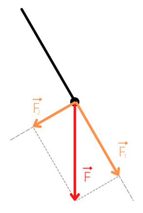 Należy rozłożyć wektor ciężaru kulki na składowe o kierunkach równoległym i prostopadłym do kierunku sznurka.