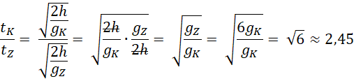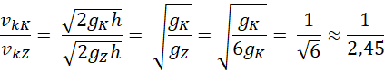 , czyli ok. 2,45 razy, prędkość końcowa zmalała tyle samo razy.