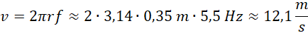 Oblicz prędkość ruchu postępowego roweru, wiedząc, że średnica koła ma wymiar 0,7 m, a koło kręci się z częstotliwością 5,5 Hz.