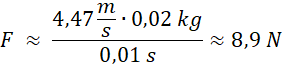 Na początku Skorzystaj z ogólnego sformułowania drugiej zasady dynamiki. Przyrost prędkości jest równy prędkości przed samym upadkiem, ponieważ kulka wytraciła całą swoją prędkość podczas zderzenia. Musimy obliczyć prędkość kulki przy upadku, dlatego stosujemy wzory kinematyczne występujące w ruchu jednostajnie przyspieszonym. Na koniec podstaw dane i wykonujemy obliczenia.