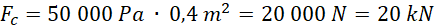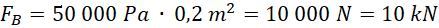 Odp.: Siła parcia na ścianki A, B, C wynosi kolejno: 10 kN, 20 kN, 25 kN. Ciśnienie dla każdej wynosi tyle samo – po 50 kN.