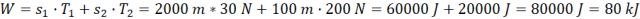 Oblicz, jaką łączną pracę wykonał renifer, ciągnąc sanie po śniegu przez 2 km (siła tarcia 30 N), a następnie po piasku przez 100 m (siła tarcia 200 N).